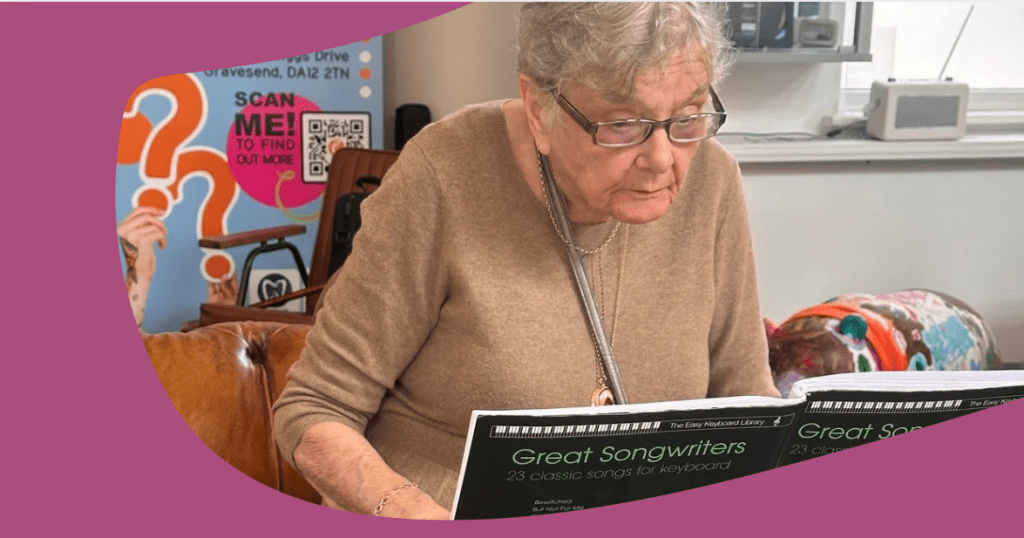 “I wanted to make sure it wasn’t banging tambourines,” she laughed. Instead, she met Andy, ellenor’s music therapist, and quickly discovered a safe and creative space where she could reconnect with music. “He was marvellous. He encouraged me to pick up the keyboard again, and later my violin. He got me writing songs, something I’d never done in my life. He gave me back my confidence.”